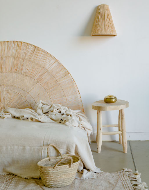 On craque une nouvelle fois pour la tendance bohème apportée par le raphia. Cette matière claire et délicate apporte un côté authentique à votre décoration intérieure. Cette matière noble est très fréquemment utilisée au Maroc dans la confection de vannerie notamment.