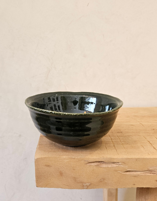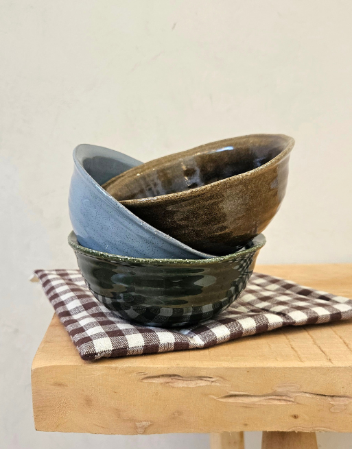 Recouverte d’un émail réactif, chaque pièce révèle de subtiles variations de teinte et de texture, rendant chaque bol unique.