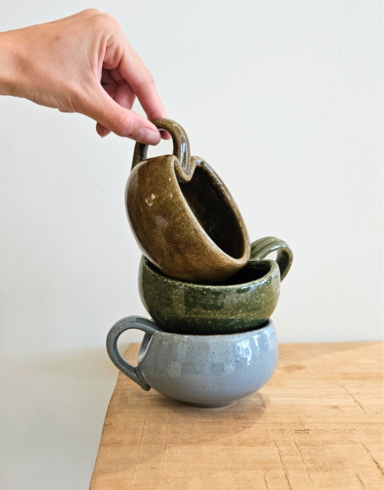 C’est une tasse qui allie esthétique et sensorialité : agréable en main, réconfortante par ses teintes, et pleine de charme par ses légères irrégularités.