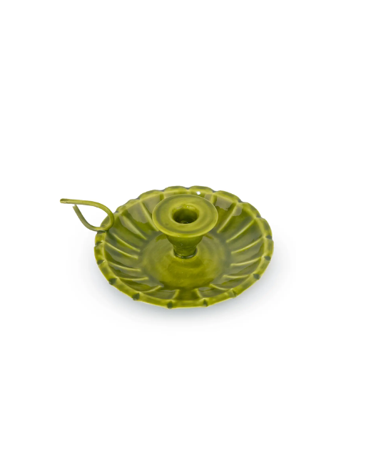 Ce bougeoir en métal émaillé vert olive séduit par son élégance naturelle et son charme intemporel. Sa finition brillante met en valeur la profondeur de sa teinte et à la fois douce et chaleureuse.