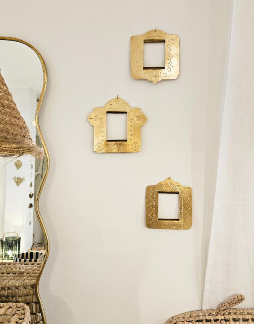 Chaque pièce est dessinée à la main dans ma petite boutique, puis fabriquée par nos artisans en laiton martelé, ce qui lui confère un charme authentique et une touche délicatement vintage.