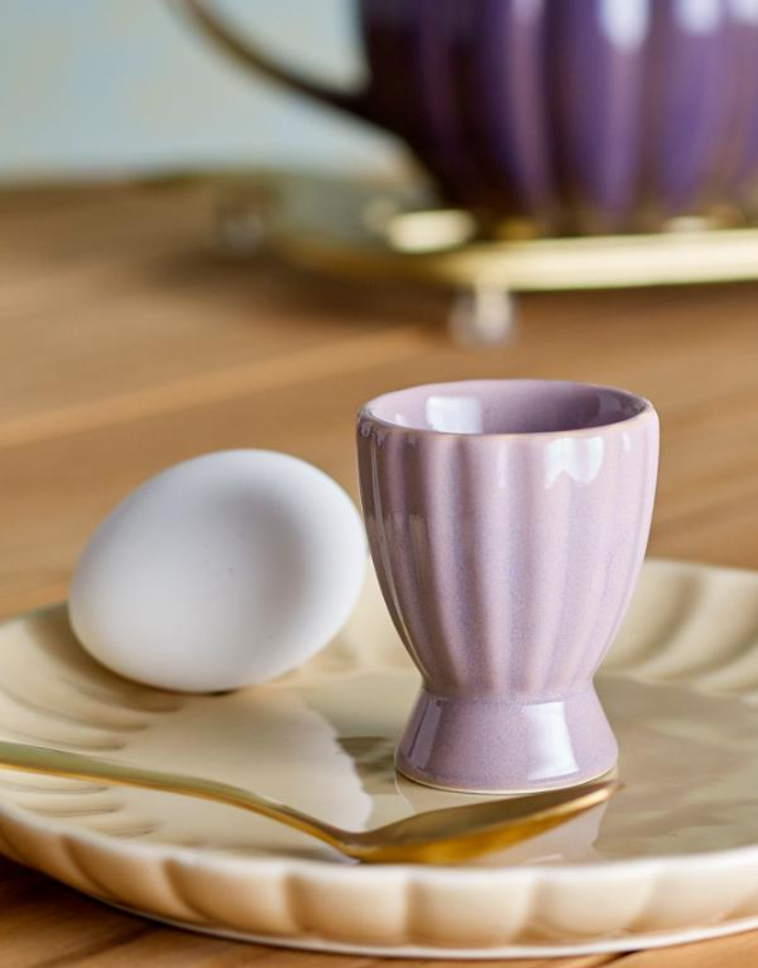 Coquetier rose de la marque Bloomingville en grès émaillé. Idéal pour apporter une touche élégante à votre table de petit-déjeuner.
