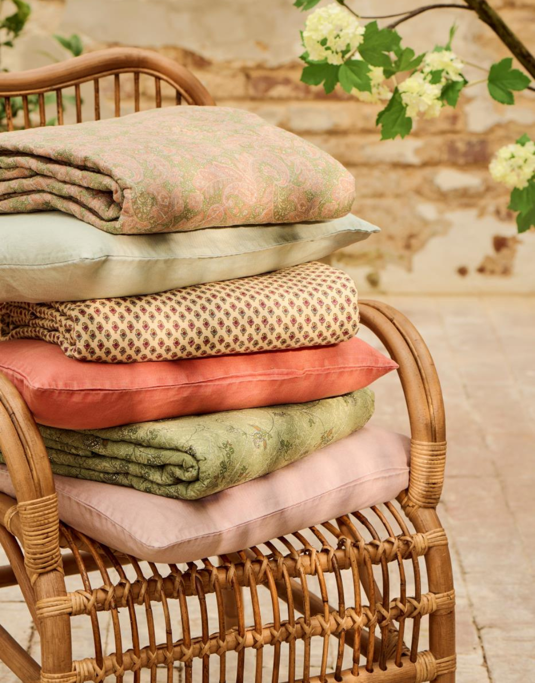 Joli dessus de lit matelassée en 100% coton, aux délicates nuances de vert et de rose, sublimée par un élégant motif cachemire au charme intemporel. Son matelassage soigné et son garnissage composé de 90% coton et 10% polyester lui confèrent un tombé souple, un confort agréable et une belle tenue dans le temps.