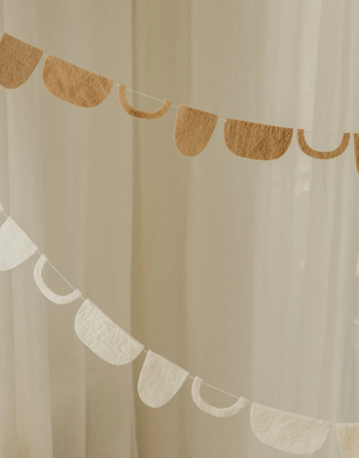 Jolie guirlande « Orane », coloris dune, de la marque Miijo. Ses formes en demi-lune, s’enchaînent dans un rythme libre et léger, invitant à la rêverie. Suspendue sur un mur, le long d’une porte ou d’un ciel de lit, elle suggère un paysage imaginaire à recomposer selon vos envies.