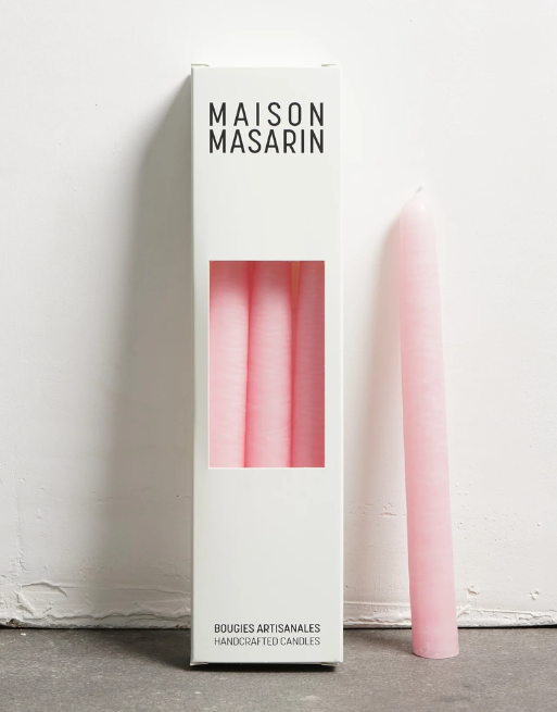 Lot de 3 bougies coniques coloris « ballerine » de chez Maison Masarin, fabriquées selon un savoir-faire ancestral en Provence. Elles offrent une finition artisanale unique, une flamme lumineuse et une décoration élégante pour toutes vos occasions.