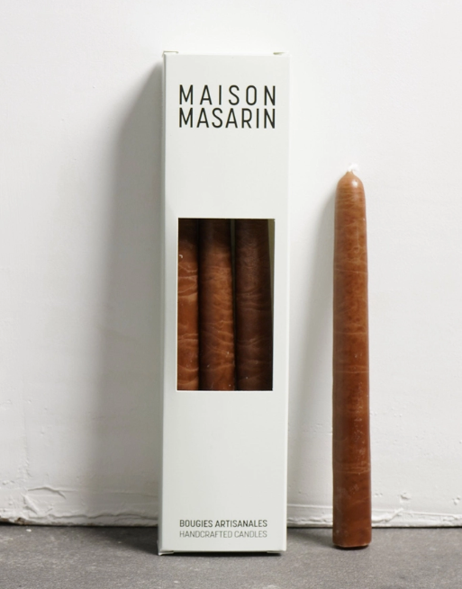 Lot de 3 bougies coniques coloris « brun » de chez Maison Masarin, fabriquées selon un savoir-faire ancestral en Provence. Elles offrent une finition artisanale unique, une flamme lumineuse et une décoration élégante pour toutes vos occasions.