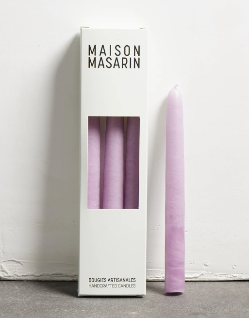 Lot de 3 bougies coniques coloris « lila » de chez Maison Masarin, fabriquées selon un savoir-faire ancestral en Provence. Elles offrent une finition artisanale unique, une flamme lumineuse et une décoration élégante pour toutes vos occasions.