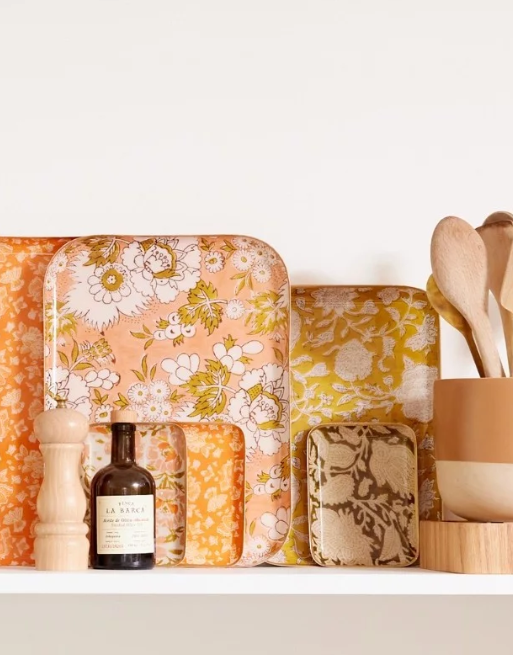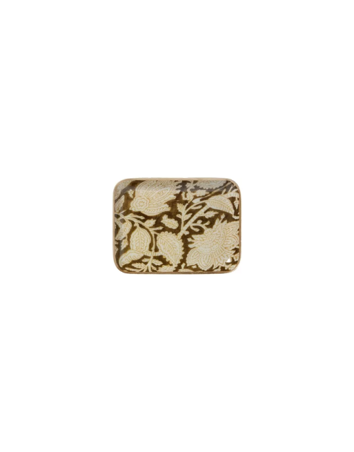 Mini plateau au joli imprimé fleuri, qui se glisse aisément dans chaque recoin de la maison : dans une entrée en guise de vide-poche, dans une cuisine pour poser l’éponge, ou dans une chambre pour accueillir vos bijoux.