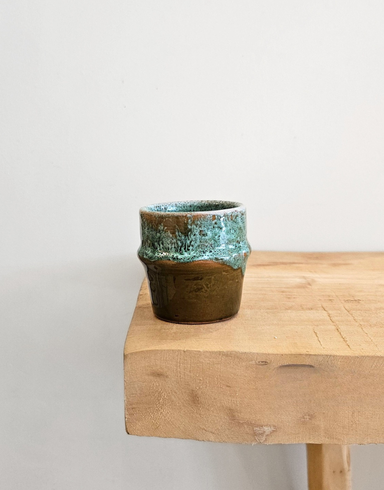 Cette petite tasse pour expresso, dans des nuances de vert, s’inspire de la forme traditionnelle des tasses beldi en version mini ! Elle combine harmonieusement tradition artisanale et design contemporain.