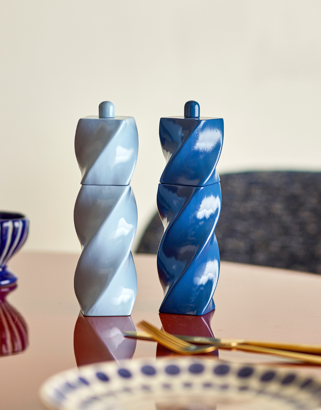 Craquez pour l’élégant moulin en bois d’hévéa de Bloomingville, sublimés par une délicate finition laquée dans un bleu doux et apaisant. Leur design raffiné attire immédiatement le regard : une silhouette subtilement torsadée associée à des couvercles arrondis qui assurent une prise en main confortable et naturelle au quotidien.