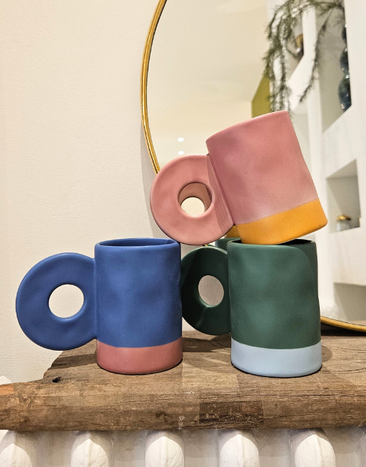 Mug en céramique bicolore, parfait pour le café, le thé ou les infusions, ajoutant une touche de couleur à votre table.