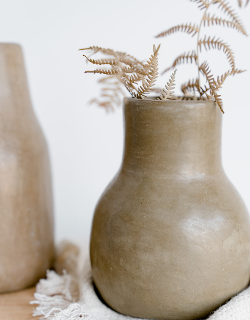 Découvrez notre soliflore dans les tons chauds olive à disposer sur une table ou bien une étagère pour mettre en valeur vos brins de fleurs séchées.