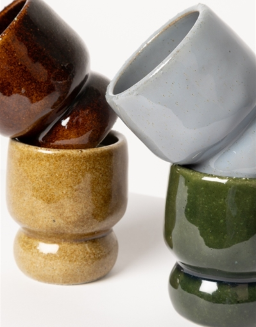 Recouverte d’un émail réactif, chaque pièce révèle de subtiles variations de teinte et de texture, rendant chaque tasse unique. On aime particulièrement son pied délicatement marqué, qui vient structurer la forme tout en lui apportant une touche originale et contemporaine.